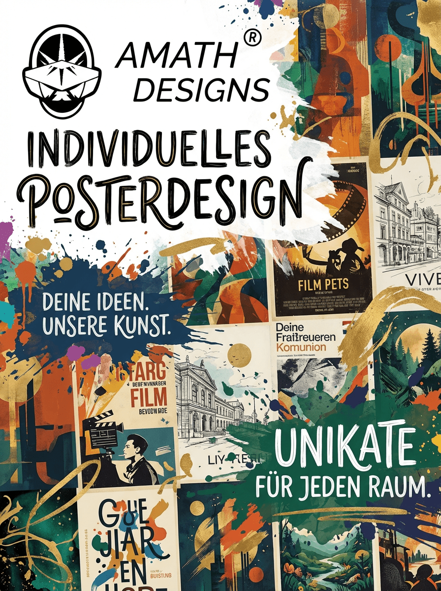 Poster von Amath Designs, präsentiert Ihre Marke überzeugend. Ein hochwertig gestaltetes Poster vermittelt Seriosität, zeigt die Persönlichkeit des Unternehmens und hinterlässt einen bleibenden Eindruck bei Kunden, Partnern und Investoren.